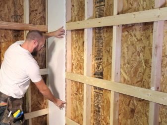 Когато всички линии са очертани, можете да инсталирате щайгата. За дървена струга е по -добре допълнително да се използва дезинфекционен разтвор. Дюбелите трябва да се монтират на интервали от около 50 сантиметра и след това да се фиксират ламелите върху тях. Освен това, ако стената е с очевидни неравности, тогава каналите могат да бъдат запълнени с чипове или специални дървени клинове с подходящи размери. Струва си да се отбележи, че дървената рамка е най -подходяща за довършване на сухи помещения..