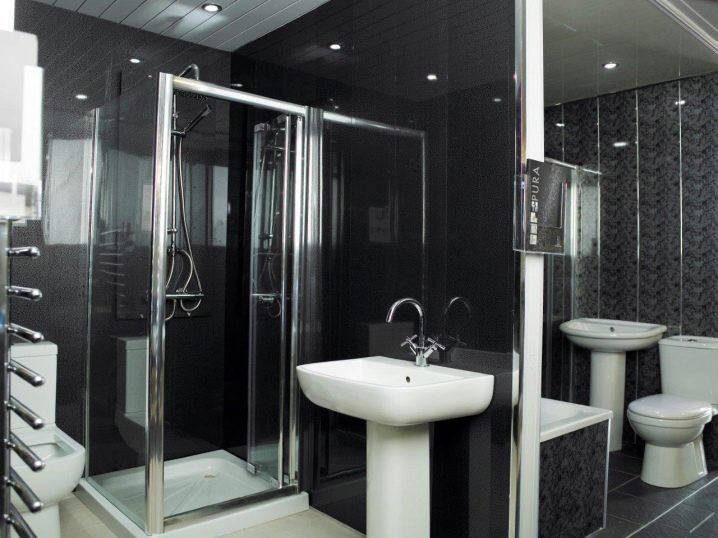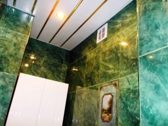 Много сложни и фини опции сред пластмасовите плочки също не са необичайни. Можете да изберете модели от син мрамор. С няколко подходящи декоративни елемента, стая с такива плочки ще бъде с височина на елегантност. Разбира се, най -често срещаният цвят са бели или шарени панели. Тъмните цветове обаче показаха, че са в голямо търсене..