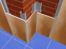 След като създадете рамката, можете да монтирате самите панели. Инсталацията обикновено започва от левия ъгъл на стаята. Първо, трябва да инсталирате вътрешен пластмасов ъгъл, който има съединители, ориентирани към съседни стени. След това трябва да фиксирате горните и долните первази..