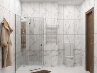 Мраморните плочки са много търсени на пазара, но са доста скъпи. Пластмасата с мраморен модел е добра алтернатива на истинската керамика и е значително по -ниска в цената. Декорирайки стените в банята с такива панели, ще получите шикозна стая на разумна цена..