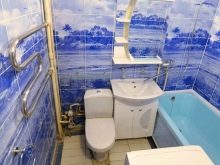 Цветът на небето никога няма да излезе от мода. Синята баня е мечтата на много романтични натури, любители да мечтаят и да летят в облаците. Синият цвят отпуска, помага да забравите за лошото и да се настроите към положителното. Банята в син цвят ще се превърне в истинска стая за отдих, която е толкова необходима след тежък работен ден..