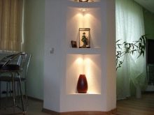 И накрая, можете да се обърнете към примери, показващи хармоничната комбинация от рафтове от гипсокартон с общата концепция за интериорен стил.