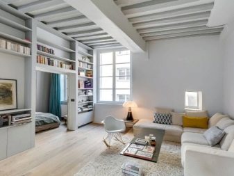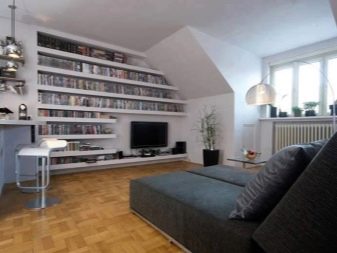- Нестандартните ниски тавани, други форми на стаи усложняват избора на мебели. Рафтовете и шкафовете могат да бъдат направени от гипсокартон.