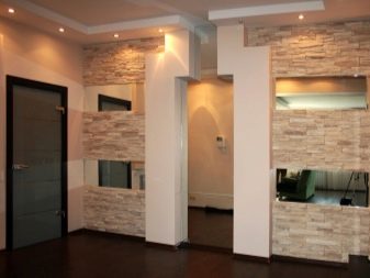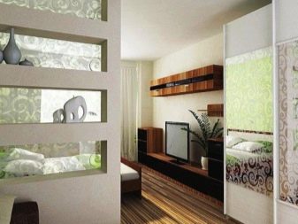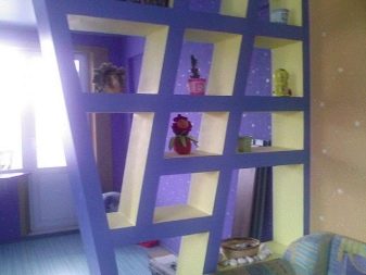 Ако помещенията на къщата са многофункционални, например, това е отворен план или комбинация от стаи (спалня и хол, кухня и трапезария), от гипсокартон можете да изградите зониращи прегради с проходни рафтове. Това ще ви позволи да ограничите пространството. Рафтовете могат да се използват за съхранение или да бъдат украсени с декоративни вази. Тази опция е подходяща и за студио апартаменти..