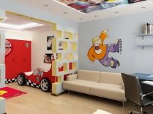 - Също така често се издигат декоративни конструкции в детската стая, за отделяне на зоните за игра, спане и учене. Това е особено вярно, ако две деца споделят стая..