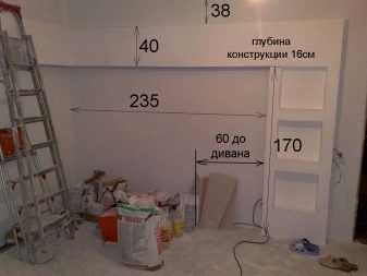 Изграждането на всяка структура започва със създаването на скица, която е изглед на рафта след монтажа. Важно е да помислите за външния вид на рафтовете, функционалността, да изчислите размера и теглото на товара. Размерът и видът на гипсокартона влияе върху развитието на външния вид на бъдещата конструкция. Например, за извито изпълнение се използва гъвкав дъгообразен гипсокартон.