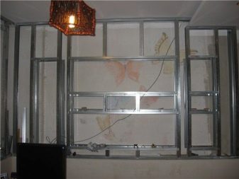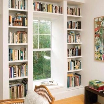 Можете да направите рафтове от гипсокартон около прозорците и вратите. Близо до прозореца можете да организирате подиум с ниша за съхранение. Когато инсталирате, трябва да вземете предвид теглото на човек, не забравяйте за разположените батерии. Ако не са монтирани вентилирани решетки, помещението ще се отоплява слабо през студения период. Рафтовете могат да бъдат разположени от отвора до стената или под формата на тесни первази до тавана. Над вратите можете да организирате мецанин, върху който да поставите обемни, но леки предмети.