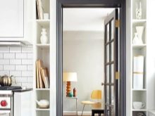 - В малките апартаменти рафтовете могат да се поставят около отворите на вратите и прозорците. Прост и функционален.