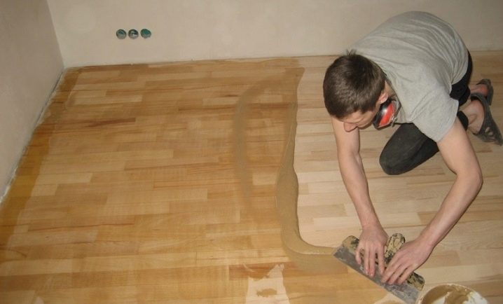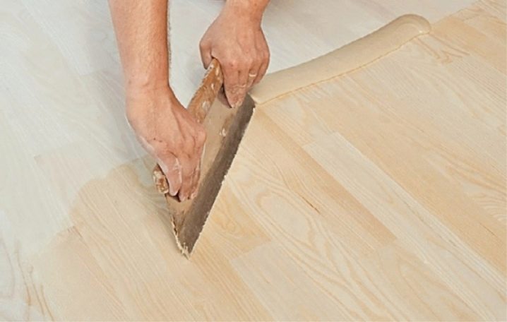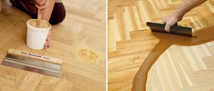 - Замазката, използвана за довършване на подовите настилки, се характеризира с отлично сцепление с повърхността. Той перфектно запълва съществуващите неравности и дори най -малките пукнатини, които със сигурност ще се появят в паркета след няколко години експлоатация..