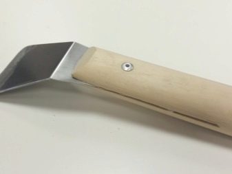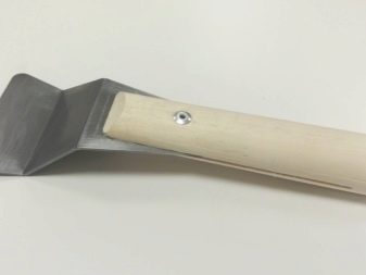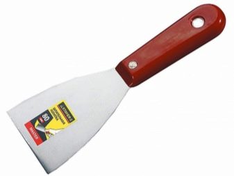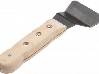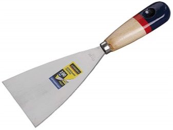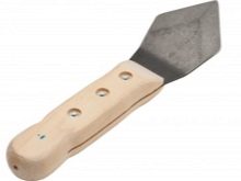 - Голям с лопатка, извита под ъгъл 45 градуса. Този модел шпатула е най -популярният и е подходящ за всякакви монтажни работи както с плат, така и с поливинилхлориден материал. Тези шпатули са оборудвани с дървена дръжка с дължина 40 см.