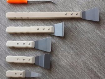 - Извита, права. Те изпълняват основната част от операцията по запълване на таванния материал в багета. Извитите шпатули имат различни ъгли на металната част и дължината на дръжката. Формата на металната им част е направена под формата на трапец, разширяващ се в края. Неговият завой има различен наклон и зависи от формата на профила на самата франзела..