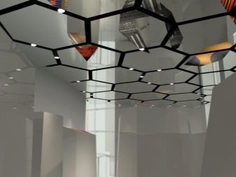 - Решетка конструкция, който се използва за оригинални дизайнерски решения с необикновени форми. С него можете да направите таван с различни геометрични форми..