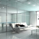 - Обикновено стъкло използва се предимно в нежилищни помещения. Той е скъп, тежък, лесно се счупва, труден за сглобяване и също така изисква задълбочена подготовка на специален дизайн. Такова стъкло перфектно увеличава визуалното пространство поради своята отразяваща способност..