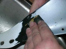 Преди да нанесете лепило (например AS 224), е необходимо внимателно да подготвите работната повърхност за ремонт, това ще осигури силно и висококачествено сцепление. Повредените зони трябва да бъдат обезмаслени и почистени от химическо замърсяване и боя. В случай на авариен ремонт на дупки и запечатване на празнини, предварителните мерки могат да бъдат отменени, но в такива ситуации качеството на връзките ще бъде по -ниско.