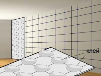 - Когато грундът изсъхне, нанесете лепилото върху основата. Направете това в центъра на основата и около нейния периметър. Фрагменти от лепилото трябва да са доста обемни и големи. Можете също така да нанесете лепилото върху самия панел..