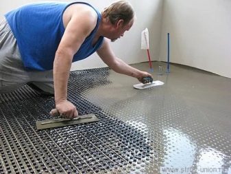 Задължително се изравнява нивото и се монтират маяци, по които ще се извършва пълненето.. Когато подът се излива с пясъчен бетон, той просто се излива върху повърхността, като се изравнява с правилото. По време на втвърдяването (в рамките на първите 3 дни) трябва да се предотврати изпаряването на влагата от разтвора, за което излятите основи се покриват с брезент.