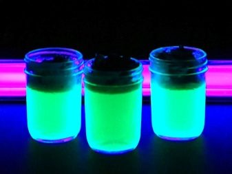Малко по -различен вид са флуоресцентните бои. Те могат да бъдат от всякакъв цвят и да приличат на обикновена боя. Те не се различават от конвенционалните покрития нито през деня, нито през нощта. За тяхното сияние е необходим източник на ултравиолетова светлина. Те могат да се използват върху дърво, бетон, хартия, метал или пластмаса. За да се прояви ефектът им, един слой е напълно достатъчен.