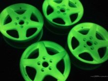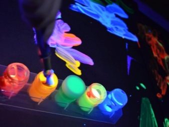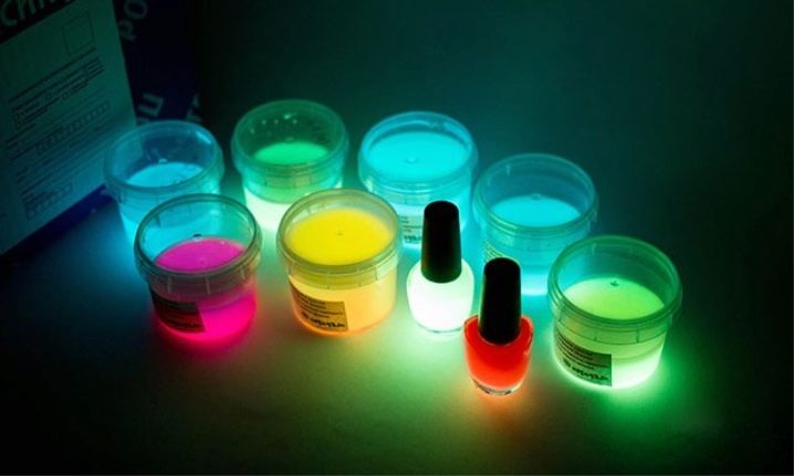 Светещата боя на базата на акрилен лак ще свети само когато е изложена на ултравиолетова светлина. Пигментът й може да бъде с различни цветове, но най -ефектният ще изглежда като червени, жълти, зелени и розови нюанси..