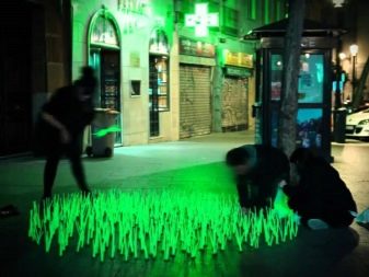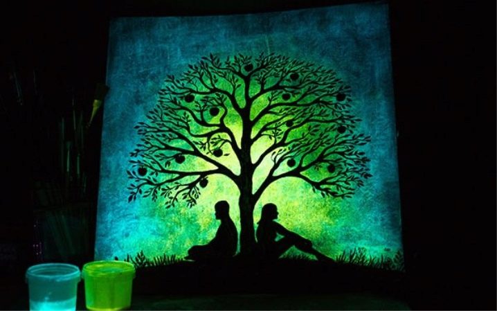 По същия начин светещата боя, за която малко хора са чували преди няколко десетилетия, днес има широк спектър от приложения. Използва се не само за битови нужди, но и в различни дизайнерски проекти, за да създаде празнична атмосфера на партита..