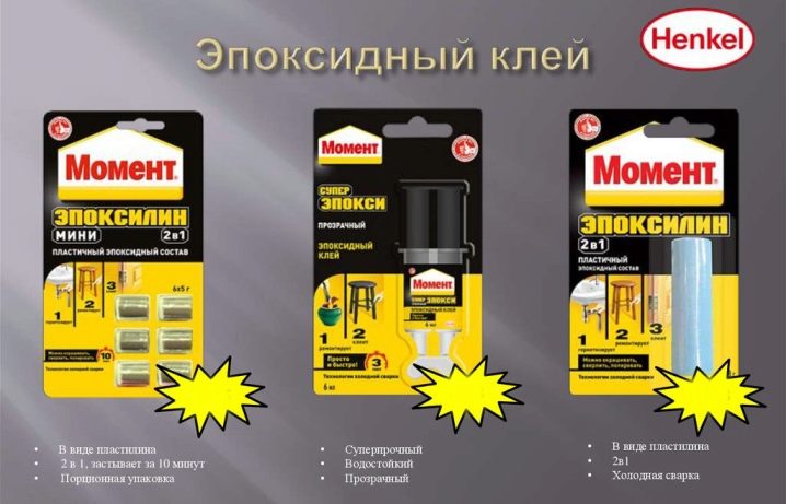 “Момент” – това епоксидно лепило може да се намери във всеки магазин за хардуер и хардуер на много достъпна цена. Такъв състав се реализира в малки епруветки, чието тегло не надвишава 50 ml, както и в насипни опаковки – такива лепила могат да се използват многократно.
