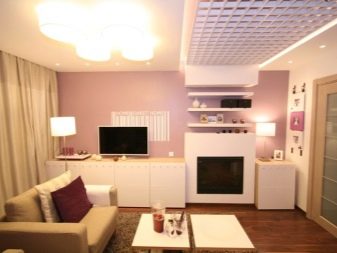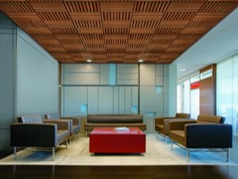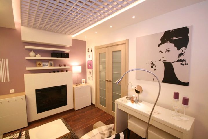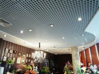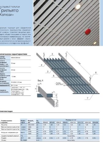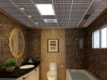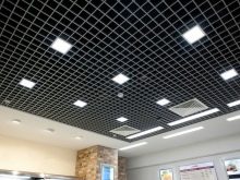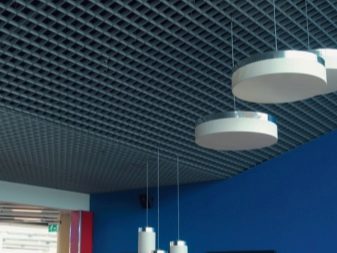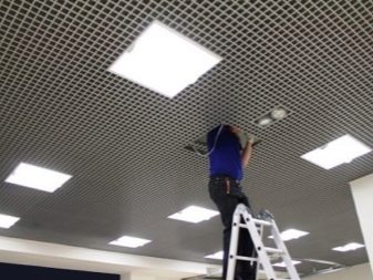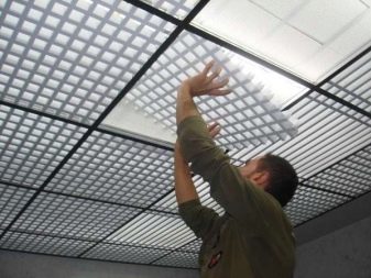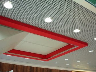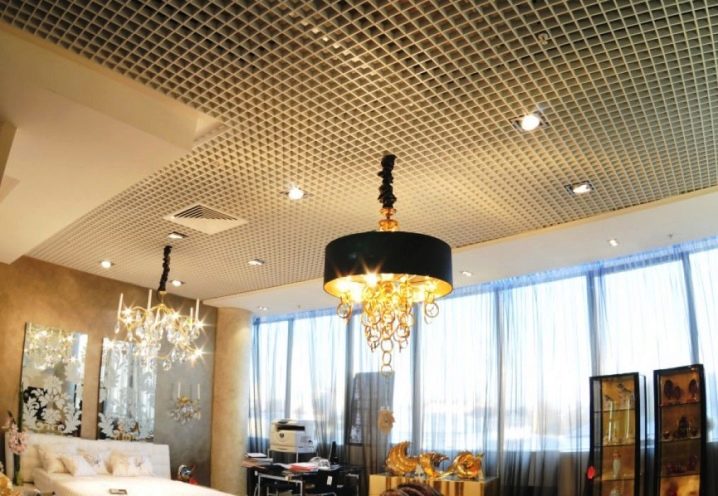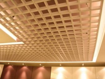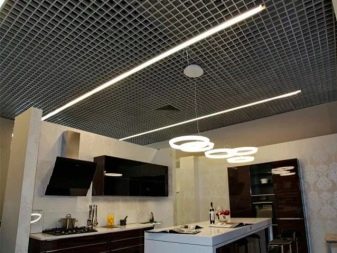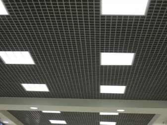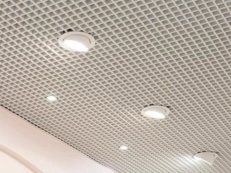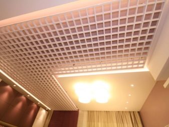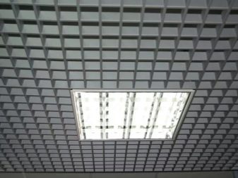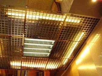 Има варианти на осветителни тела, проектирани специално за тавани Грилято. Те допълват растерното покритие най -хармонично, имат правоъгълна форма и добра осветеност..