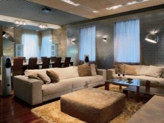 Трябва да се има предвид, че окаченият таван ще отнеме поне 15 см от височината на помещението. Така че само собствениците на апартаменти и къщи с високи тавани могат да си позволят такова смело и ефектно покритие..