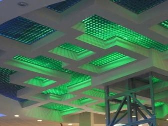 Устройствата могат да бъдат инсталирани по скрит начин вътре в таванната конструкция, те могат да бъдат поставени директно в клетките или можете да изберете външни и висящи лампи. Пространството за въображение е огромно и ви позволява не само да постигнете красив визуален ефект, но и да подчертаете стила и да зонирате пространството.