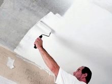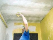 На първо място, трябва да премахнете остатъците от минали материали. След това повърхността се замазва, запълват се ями и пукнатини. След това е по -добре да боядисате тавана във всеки тон. Това има своите предимства – можете да изберете контрастни нюанси за основата и декоративното покритие. Това ще подобри ефекта на дизайна..