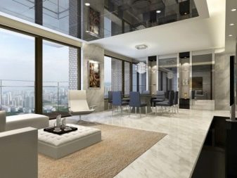 Огледалните таванни панели придават на стаята уникален стил, изпълват я с усещане за простор и светлина.