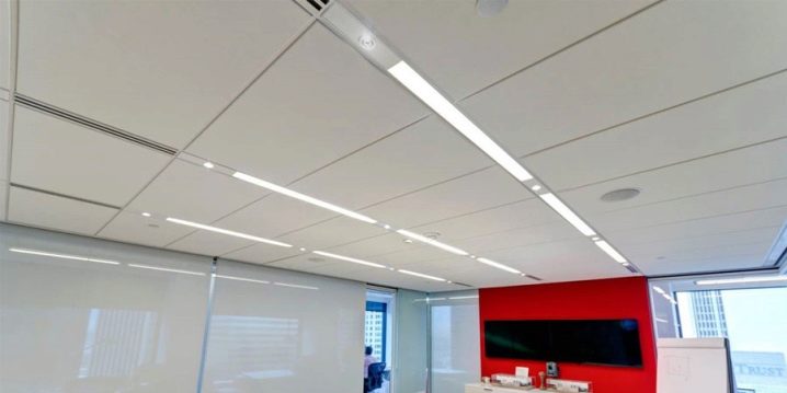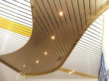 - За тавани с ламели – тесни и продълговати плочи, оборудвани с крепежни елементи, благодарение на които се монтират към рамката и една към друга.