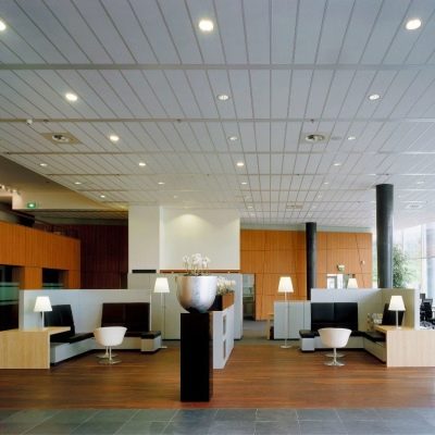 Тези панели се отнасят до бюджетни опции, те са предназначени за монтаж в офис и търговски помещения, както и на места с голям трафик, например на гари. Параметрите на панелите са 595×595 мм, а дебелината е 12 мм, коефициентът на устойчивост на влага е в диапазона 70-90%, а показателят за звукоизолация е -0.1.