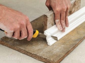 Инсталирането на перваза означава изрязване на излишната дължина и регулиране в ъглите. За да направите подрязване, се нуждаете от инструменти. Изборът на този или онзи вид инструмент зависи от материала, от който е направен цокълът..
