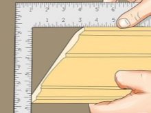 За външния ъгъл первазът е подрязан под ъгъл от 45 градуса. Първо трябва да проверите равномерността на външния ъгъл. Ако повърхностите на стената са в контакт една с друга точно на 90 градуса, можете да използвате митрираща кутия за подрязване на перваза. За да изрежете правилно външните ъглови дъски, е необходимо правилно да позиционирате и двете части на перваза..