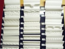 Таванните елементи вече се предлагат в няколко вида материали в многобройни конфигурации. Те са по -евтини от гипсовите, но изглеждат не по -зле. Най -евтините копия са направени от поливинилхлорид (PVC). Този материал е обект на деформация с незначително механично напрежение, образуването на непоправими вдлъбнатини или гънки води до пълна подмяна на елемента. В допълнение, всички произведени PVC первази са електростатични, прахът се натрупва върху тях много бързо..