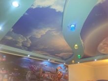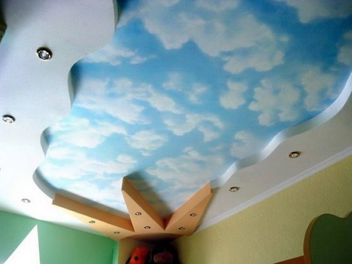 С тавана “небе” можете да направите стая уникална. Опциите за дизайн са разнообразни. На корицата може да има пухкави облаци или блестящи звезди, а някои предпочитат ясно синьо небе. Във всеки случай такъв таван ще носи заряд на положителна енергия. Също така изображението може да заема цялата повърхност или да се намира в определена област на тавана..