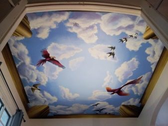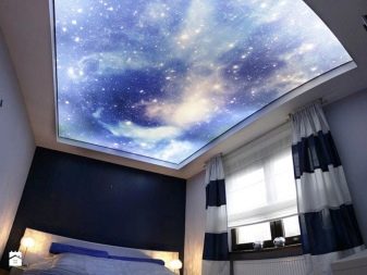Таван с картина е доста необичаен, но много интересен вариант. Хората поставят различни шарки на тавана. Една от най -популярните теми е небето с облаци или звезди. Звездното небе ви позволява да усетите пълната сила на очарованието на нощното време, докато облаците подобряват настроението ви и ви помагат да постигнете хармонично състояние на ума. Тази успешна находка често се използва при проектирането на различни интериори, тъй като таванът във формата на небе може да се превърне в акцент във всяка стая..