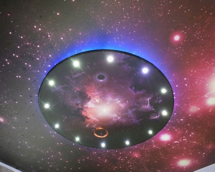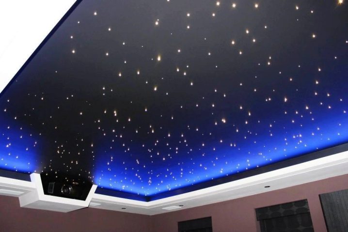 При създаването на изображение на звездното небе на тавана често се използва подсветка. Тя ви позволява да постигнете максимален реализъм и прави покритието особено красиво.