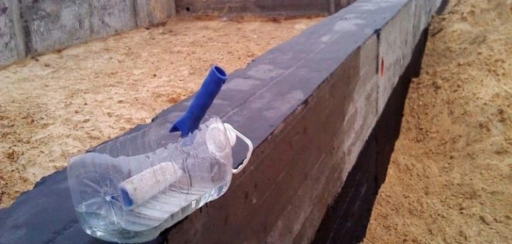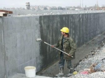- Хидроизолацията с помощта на горния състав се извършва върху бетонни стени с неравности, както и върху вертикални повърхности с изветрена мазилка.