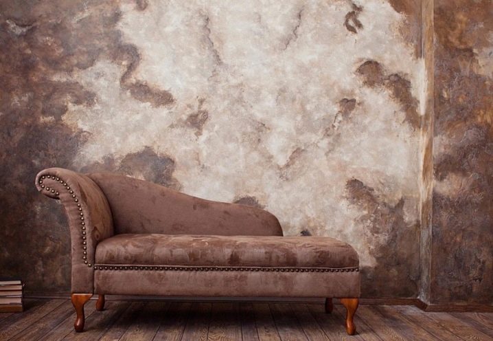 Мазилката с ефекта на умишлено стареене и „изгризана от корояд“ се оказва доста популярно решение. Такъв материал е отлично вплетен както в модерни, така и в класически композиции, може да се приложи в стил таванско помещение. Чрез промяна на техниката на работа и фракцията на пълнежа е възможно да се придадат каналите на различни дълбочини.