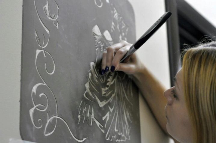 Техниката сграфито е още по -привлекателна – първо покритието се прави възможно най -равномерно, след това с помощта на шаблон го надраскват, създавайки рисунки с всякакви предмети. За да се образува многоцветна композиция, се използват два или повече шаблона. По стените на малки помещения са за предпочитане гладки или петнисти с фино слоести мазилки..