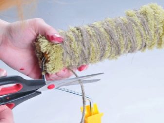 За да надстроите обикновените валяци от пяна, можете да използвате канап или парчета пяна, като ги поставите по диагонал или в друга посока. Този метод ще ви помогне да създадете естествен модел, например повтарящ структурата на кората на дърво. За да създадете мразовит сутрешен орнамент, трябва да използвате текстурирана смачкана тъкан (памук, лен). Ролката се увива с избрания материал и след това такъв инструмент за текстура се използва в работата по декориране на повърхността..