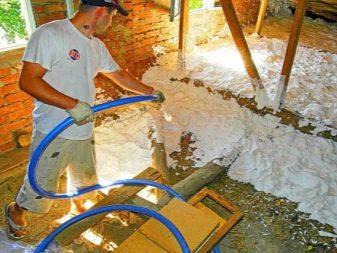 - За топлоизолация на големи площи е подходящ пълнеж от пеноизол. За да завършите монтажните работи, ще трябва да закупите специално оборудване за пръскане на сместа..