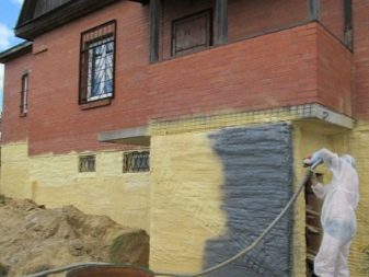 Често външната топлоизолация се извършва не само с монтажна пяна, но и с изолация от пяна, която също има структура от пяна и запълва добре кухините. Разпръсква се в пукнатините и върху повърхността с помощта на специален апарат, който създава определено налягане. Обикновено, съгласно тази схема, кухините се запечатват между фугите на тухлената зидария.. Благодарение на тази технология се осъществява пълен контрол на запълването на кухините.