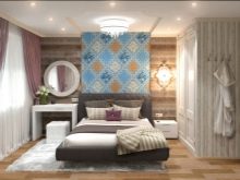 Декорацията на стената на спалнята предава селска атмосфера. Използвайки топъл, слънчев оттенък.