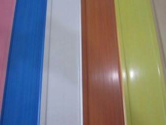 Пластмасовите изделия могат да имат абсолютно всеки цвят. Това е удобно за оформяне на таван с гипсокартон или вариант със стреч фолио в сложни дизайни. Такава подплата обикновено съвпада на цвят с тона на основния завършек и може да бъде бяла или оцветена (бежово, прасковено, млечно, слонова кост или избелено дърво). По -често това са естествени тонове или имитация на стареене, както и рисуван масив..