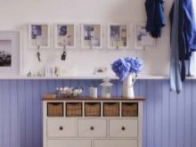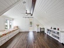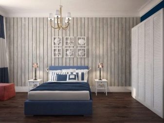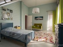 По отношение на стените, можете да го използвате за вертикални и хоризонтални облицовки.. Една стая ще изглежда красива, чиято стена е обшита с дъска под остаряла дъска на фона на тухлен перваз и таван с греди. За детската стая това ще бъде най -доброто решение за боядисване на хастара, като по този начин имитира раиран тапет. В този случай можете да редувате бяло със син или слънчев нюанс, като рисувате върху две ивици в 1 цвят наведнъж.