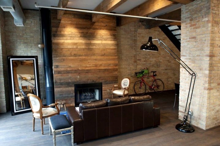 Изглежда добре на фона на тухлена стена на къща в стил таванско помещение, ако обшиете тавана с нея.. В този случай той може да бъде допълнен с петна с регулируем ъгъл на наклон на светлинния поток. Ако искате по -прости решения, можете да обшиете само една стена с нея, като добавите подплатата към минимализма със своите строги линии и минимум украшения..