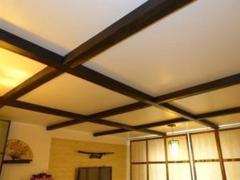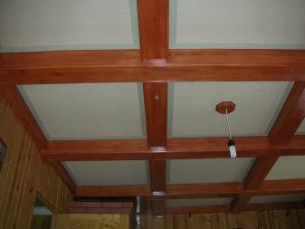 Можете да подгънете тавана върху дървени греди с помощта на различни материали. Структурите, които съчетават оригинални опции за довършителни работи от няколко панела, изглеждат красиви, в резултат на което покритието е напълно или частично равномерно. Такава повърхност може да бъде допълнително залепена с плочки от пяна, текстурирани тапети или боядисана с боя..