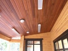 На терасата, верандата, в баните можете да подгънете тавана с всякакви декоративни панели, но най -добре е да дадете предпочитание на продукти, които не се страхуват от влага и температурни крайности. Що се отнася до подаването на тавана на балкона, за него обикновено се използват пластмасови профили, те са добре прикрепени към гредите и издържат на всякакви климатични условия. Този вид декорация се използва и в бани. Дървените греди в този случай са напълно скрити под дъската.