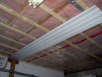 Таванът в стопански постройки и гараж се препоръчва да бъде подгънат с OSB плочи или обикновени дъски.